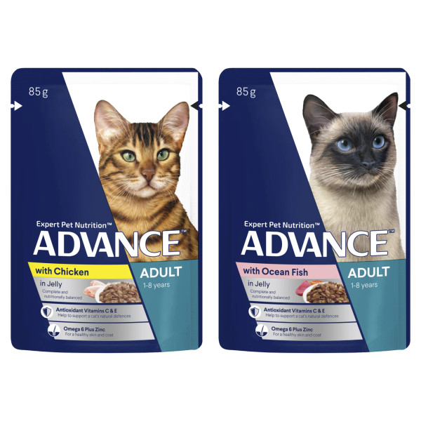 ADVANCE Feline Adult Multi Jelly is a premium, complete and balanced wet cat food designed to support the everyday health of adult cats while offering variety across meals. Made in Australia, this multi-pack features a selection of high-quality protein recipes served in a soft, palatable jelly, ideal for cats that enjoy different flavours without compromising nutritional balance.