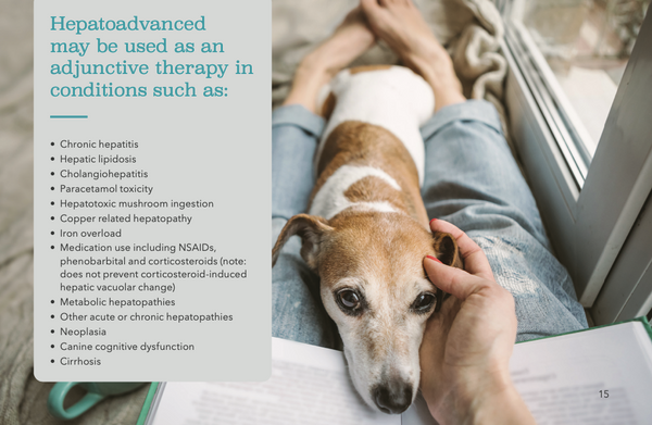 For optimal absorption, administer Hepatoadvanced (as per the dosing chart above), once a day on an empty stomach. The recommended total daily dose for dogs and cats is SAMe 10- 20mg/kg, SPC 2.7- 5.4mg/kg and vitamin E 10-15IU/kg. Hepatoadvanced can be used concomitantly with other common hepatic supportive treatments, such as prescription diets, ursodeoxycholic acid, anti-inflammatories, and other non- vitamin E containing nutritional supplements. Regular re-assessment (e.g. every 1-3 months) is recommended to ensure the optimal dose is achieved to reach the desired therapeutic outcome.