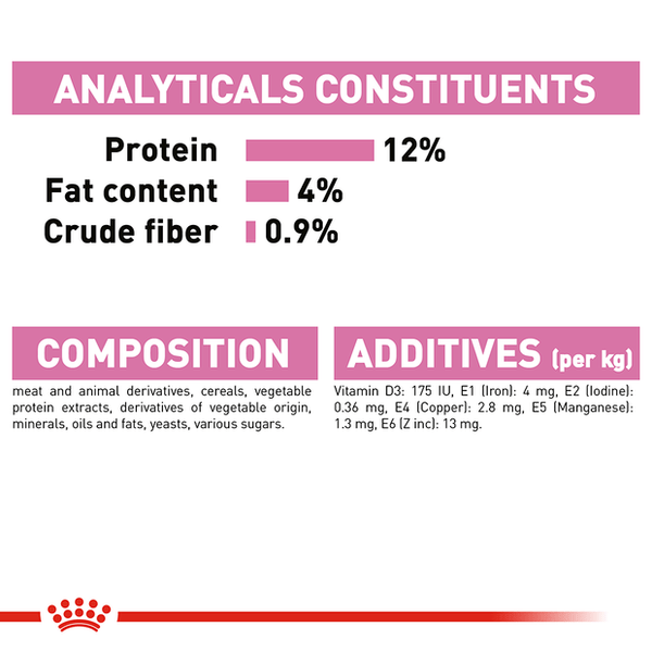 Giving your kitten the best start in life all begins with the right nutrition. Providing it with the essential nutrients it needs will properly support your kitten's development and growth at critical stages and beyond. Weaning kittens from their mother's milk can be difficult - particularly if the food isn't specifically tailored to your kitten's needs and palatability. That's why ROYAL CANIN® Kitten Instinctive in Gravy is formulated to match the optimal nutritional profile instinctively preferred by kittens. Feeding your kitten a palatable diet that takes taste, scent and texture into account will lead to long-term, instinctive acceptance of the nutritious food that you provide. ROYAL CANIN® Kitten Instinctive in Gravy provides all the essential nutrients needed to sustain high energy requirements and support bone strengthening as well as good overall health maintenance. During the second growth stage (4-12 months), your kitten's immune system will not be fully developed yet. ROYAL CANIN Kitten Instinctive helps strengthen the natural body defences of your kitten with a complex of antioxidants such as vitamin E, vitamin C, taurine and lutein. ROYAL CANIN® Kitten Instinctive in Gravy is specifically designed for easy chewing, and it's also suitable to feed to mother cats. To cater to each cat's individual preferences, ROYAL CANIN® Kitten Instinctive is also available as wet food in succulent jelly or a soft and tasty loaf.
